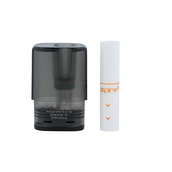 Der Vilter Pod von Aspire ist passgenau für die gleichnamige E-Zigarette und zur Nutzung mit dieser vorgesehen. Das Tankvolumen der wechselbaren, wiederbefüllbaren Cartridge liegt bei 2 ml. In den Pod integriert ist eine Mesh Coil, welche mit einem Widerstand von 0.8 Ohm für das MTL dampfen ausgelegt ist.