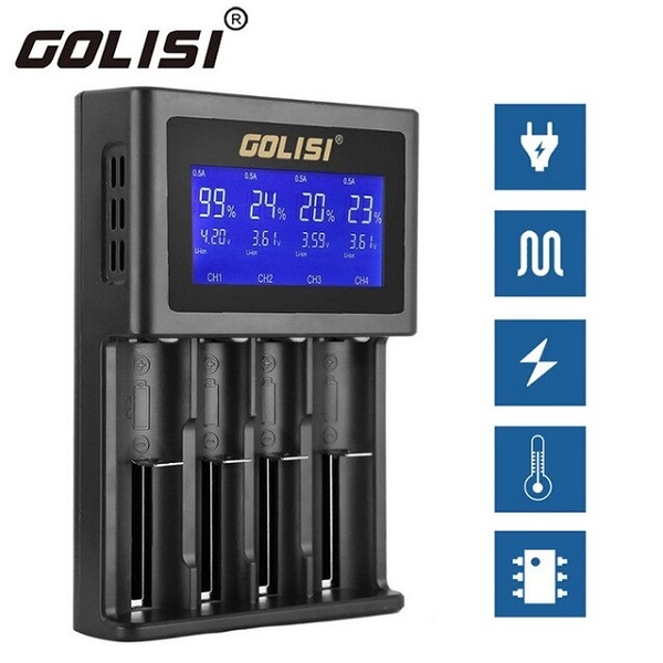 Das Golisi S4 Ladegerät aus der Smart Serie ist ein hochintelligentes Ladegerät für nahezu jede Art von Batterien. Es hat ein großes HD LCD Display, auf dem sich alle Informationen zum aktuellen Ladevorgang bequem ablesen lassen. Es werden eingelegte Batterien automatisch erkannt und entsprechend der Batteriespezifikationen schonend und langlebig aufgeladen. Alle Sicherheitsmechanismen sowie Materialien nach Militärstandard erlauben eine sichere Verwendung. Ein 2A Schnellladeschacht ist ebenfalls mit an Bord.
