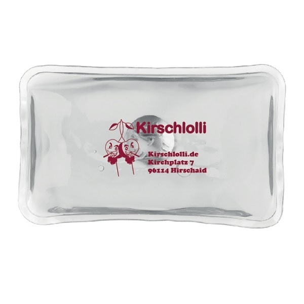Wärmekissen aus PVC. Durch das Knicken des Metallplättchens und Kneten wird die Wärme abgegeben. Vor erneutem Einsatz muss das Wärmekissen für ein paar Minuten in heißes Wasser gelegt werden. Lesen Sie mehr