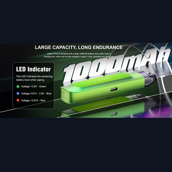 Vapefly präsentiert uns mit dem Jester 2 Pod Kit ein sehr benutzerfreundliches und handliches Pod Kit, das seine Power von einem integrierten, 1000 mAh starken Akku erhält. Die Verarbeitung ist sehr hochwertig und durch seine Oberflächenbeschaffenheit und seine Formgebung liegt das Jester 2 Pod Kit jederzeit ideal in der Hand – der perfekte Begleiter. Das Jester 2 Pod Kit eignet sich ideal als Einsteiger-Gerät, denn einen Feuertaster oder sonstige Einstelltasten sucht man vergebens.