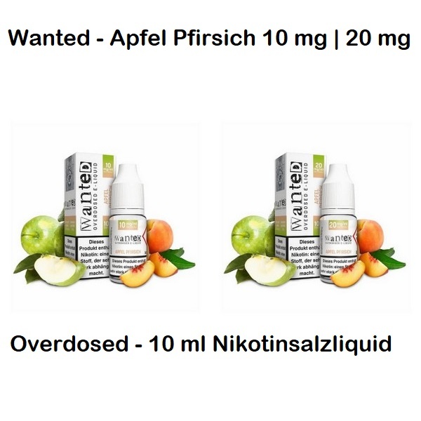 Wanted - Apfel Pfirsich - 10 mg | 20 mg - Overdosed - 10 ml Nikotinsalzliquid - Mit Steuerbanderole